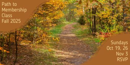 If you’ve been planning on joining UUCC, now’s the time! Our three session Considering Membership class starts on Sunday, October 19. During this time, you’ll learn some UU and UUCC history, ways to get involved, and the rights and responsibilities of membership. RSVP here (using link I previously sent). If you have questions, reach out to Membership Committee chair, Liz Kantor at Liz.h.kantor@gmail.com