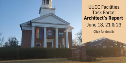 The UUCC Future Facilities Task Force invites you to a virtual session to see ideas for our facilities based on feedback gathered over the past several months. Our architectural consultants will share concepts developed from UUCC member ideas. Please register for one of the zoom sessions. All sessions are the same, and a follow-up survey will be shared after the meetings to get more input as we refine our priorities.