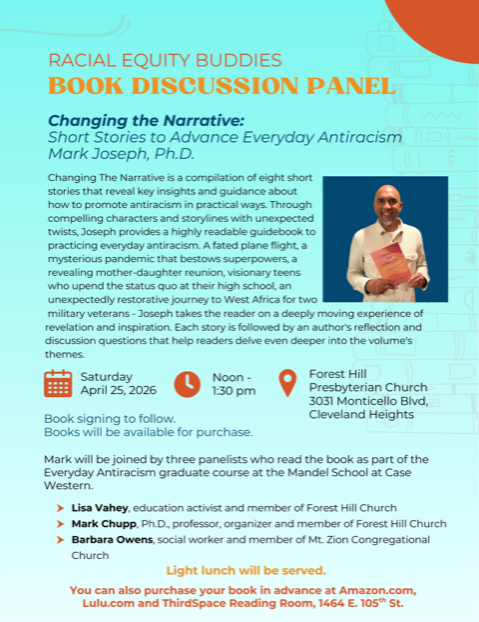 Discussion with Professor Mark Joseph about his recently published book of anti-racist short stories, “Changing The Narrative” at Forest Hill Church. A light lunch will be provided.